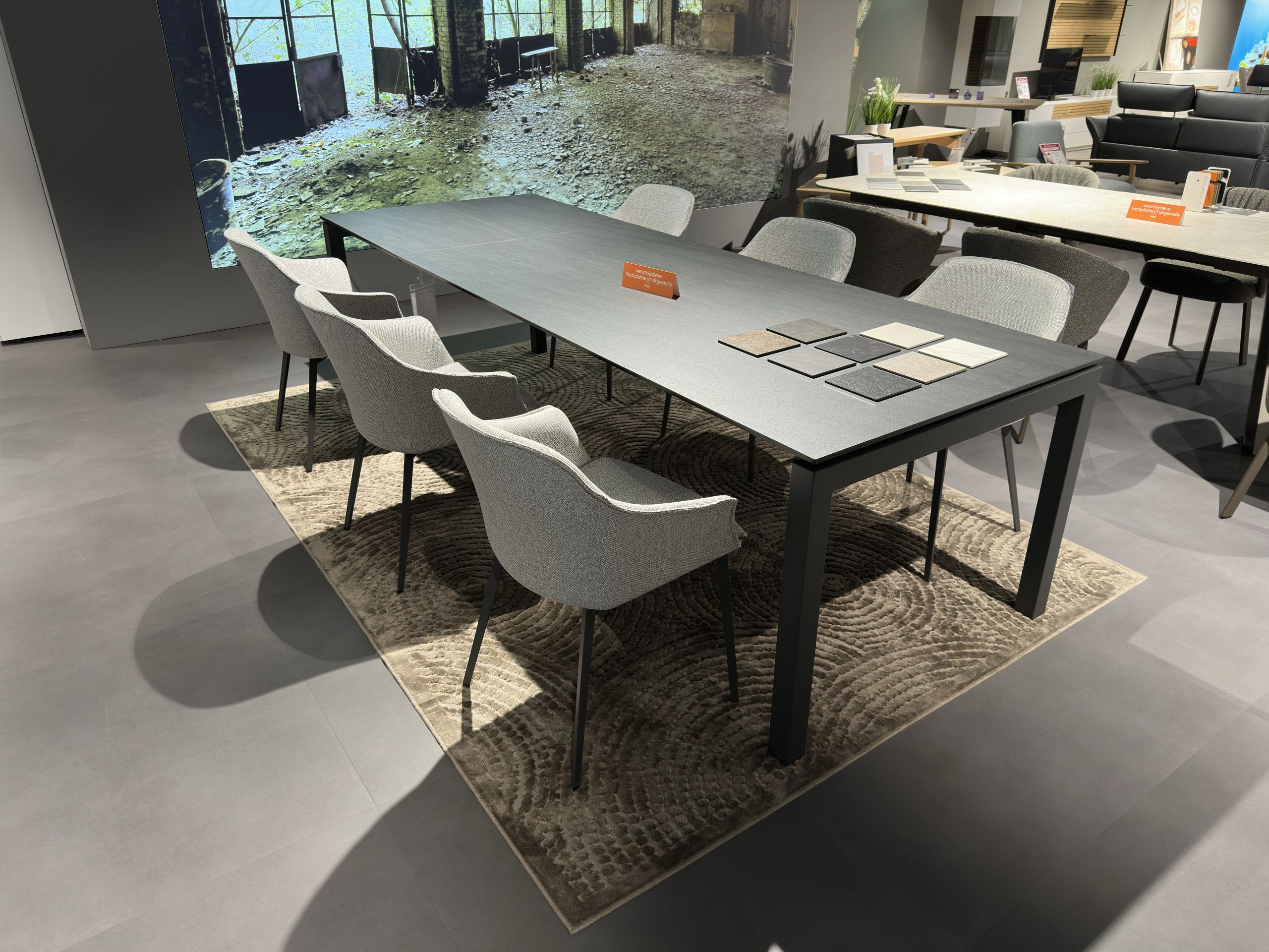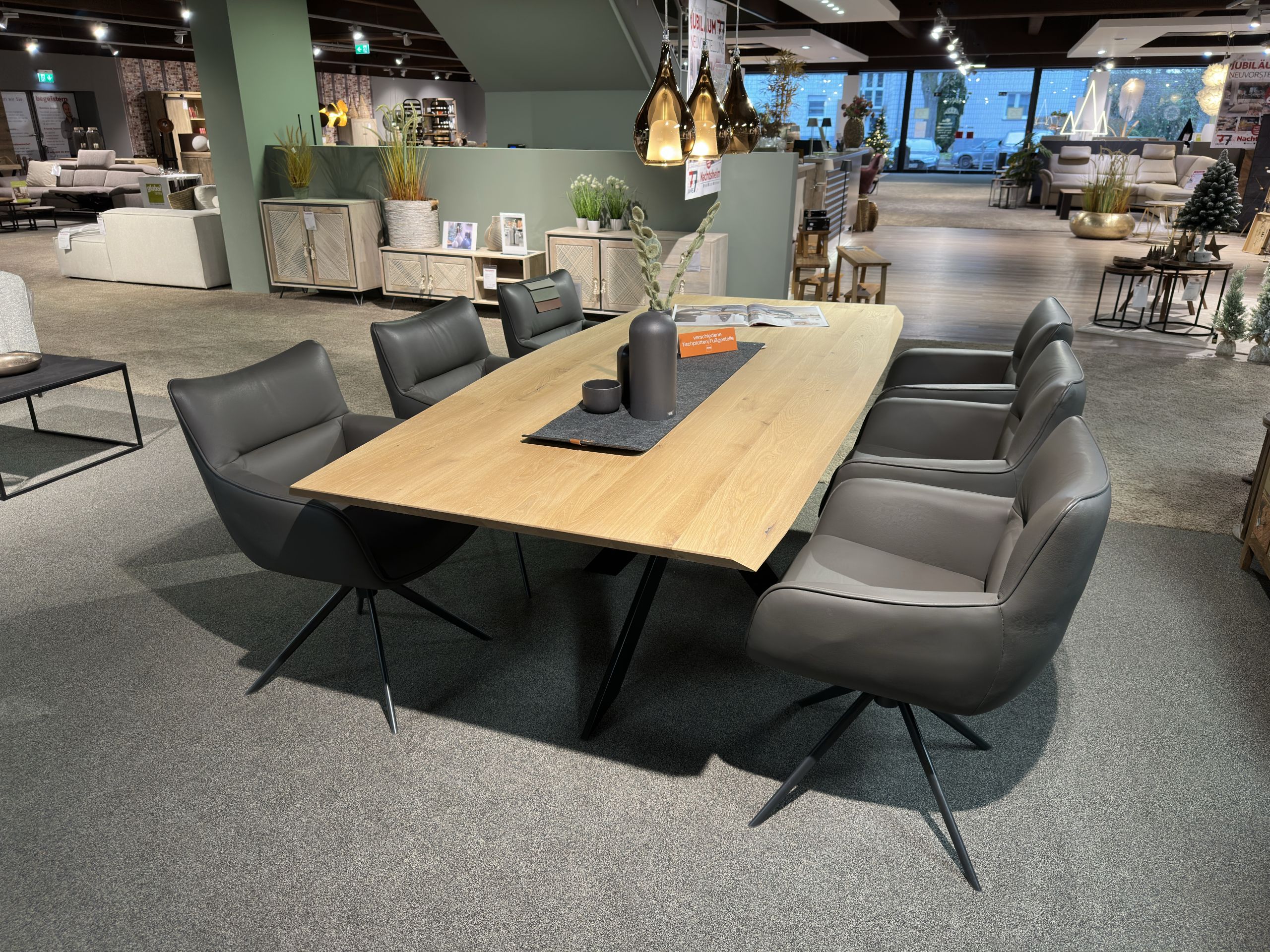 Besuchen Sie unsere Möbelausstellung in Andernach bei Koblenz und gestalten Sie mit uns Ihren neuen Essbereich. Hier können Sie sich neue Gestaltungsideen holen, auf verschiedenen Polsterstühlen probesitzen und die Qualität unserer Möbelstücke bestaunen. Gerne beraten wir Sie zu passenden Optionen, helfen Ihnen dabei, die richtige Größe des Esstischs zu ermitteln und unterstützen Sie beim geschickten Kombinieren der neuen Möbel.
