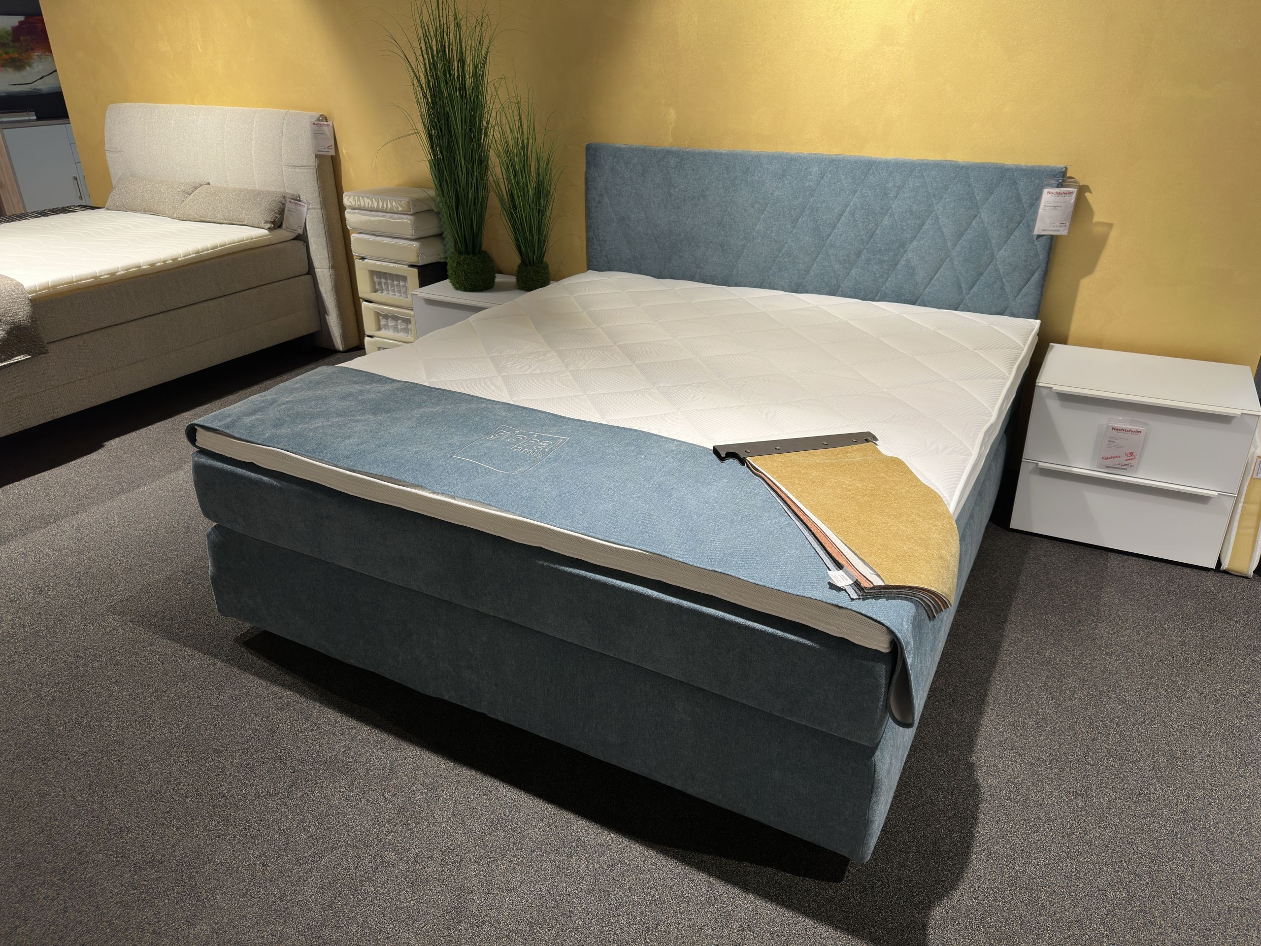 Unsere Empfehlung außerdem: Behalten Sie auch die Qualität und Verarbeitung der einzelnen Komponenten im Blick. Sie tragen maßgeblich zur Schlafqualität sowie der Gesundheit Ihrer Wirbelsäule bei. Vertrauen Sie deshalb auf renommierte Qualitätsmarken, wie sie zum Beispiel bei Möbel Nachtsheim erhältlich sind.